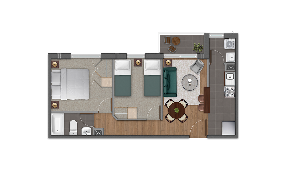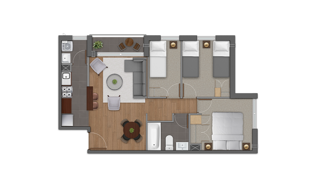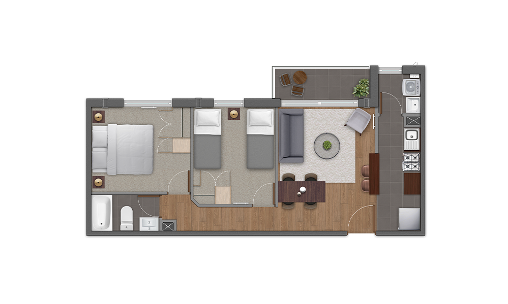 *El contenido de esta página en cuanto a imágenes y texto es referencial. Las especificaciones técnicas y el proyecto como tal pueden tener modificaciones, por lo que infórmese sobre cualquier cambio de proyecto a través de contacto o sala de ventas. Los elementos de decoración de las plantas son sugerencias de ambientación y no están incluidas en la obra. Las superficies indicadas corresponden a las totales del departamento. Esta información puede renovarse sin previo aviso.