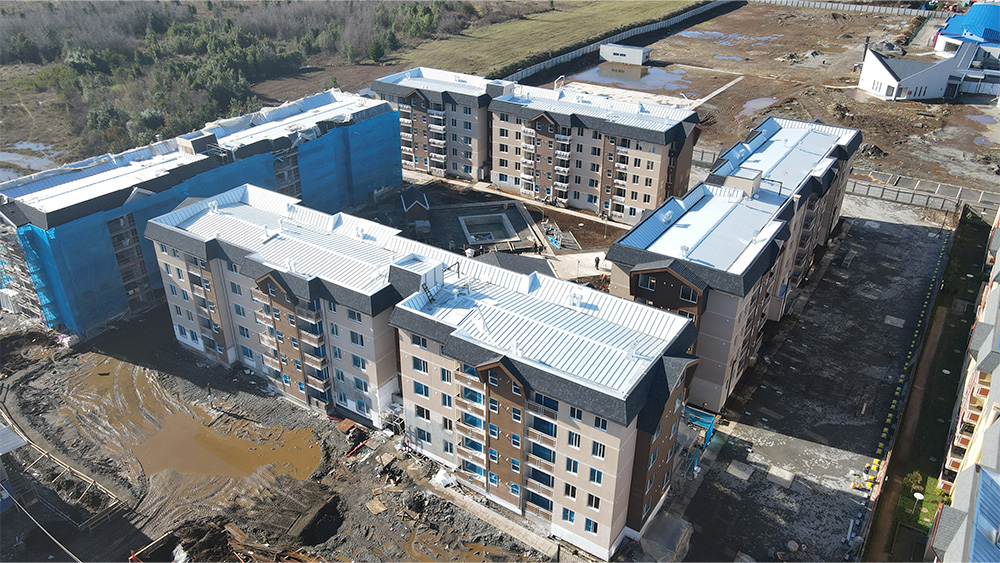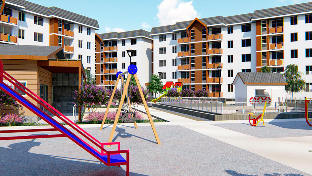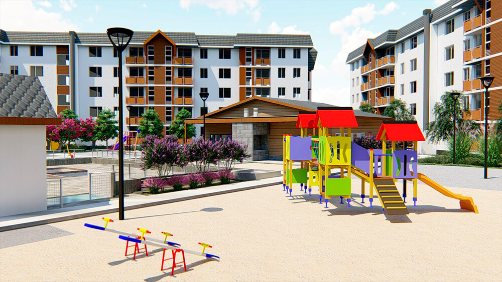 Cuenta con 4 torres de 5 pisos cada una, distribuidas de tal forma de dejar un gran área verde central, la cual contiene, equipamiento de alto estándar, juegos, maquinas de ejercicio 2 salones de eventos y una piscina. Disfruta en familia un proyecto de gran calidad, en un ambiente que te encantará.